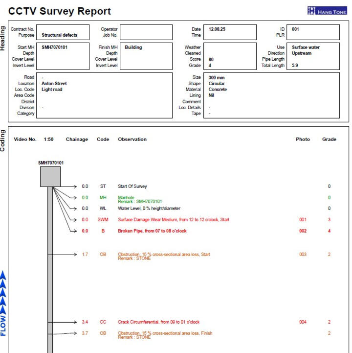 管道探測及報告 (CCTV Survey / Pipeline Inspection with WTI WRC’s MSCC Report)