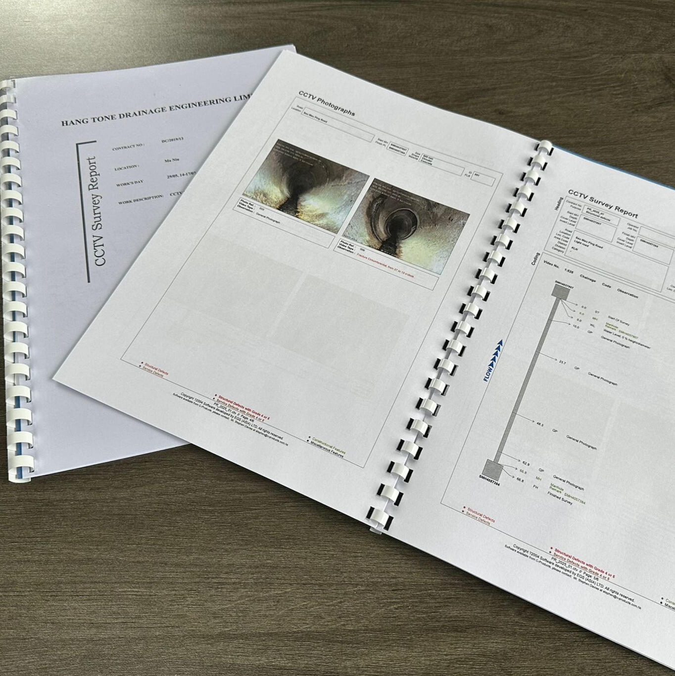 恒通利用專業儀器,拍攝渠道內部情況,並將結果反映在報告當中。報告將由完成MSCC (Manual of Sewer Condition Classification)課程的人員製作,報告格式為渠務署認可的WRc(Water Research Centre)標準。如有需要,恒通更可以在報告反映建議的保養,方便客戶預算下一步的工作。